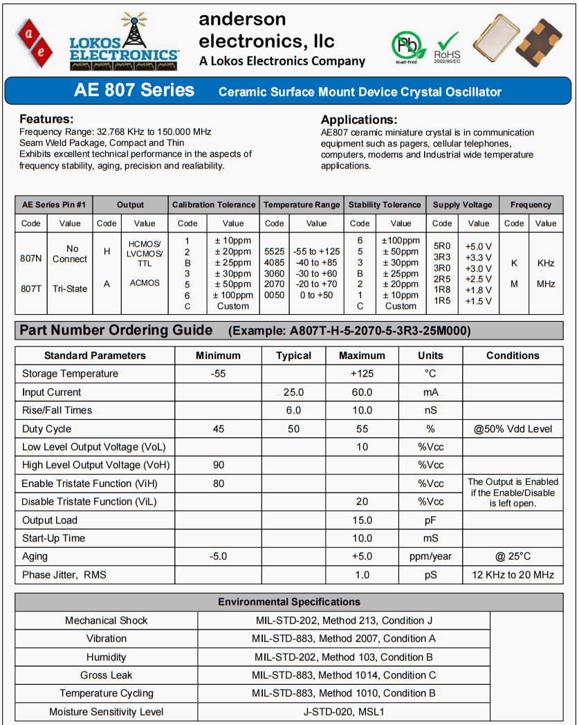 美国安德森晶振,航空航天晶振,A807T-H-5-2070-5-3R3-18M000晶振