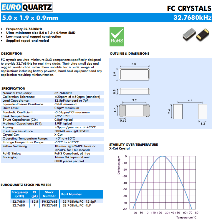 Euroquartz晶振,FC晶振,32.768kHzFC-12.5pF晶振