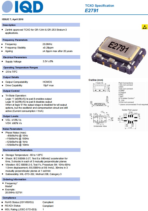 IQD晶振,E2791晶振,7050mm晶体振荡器