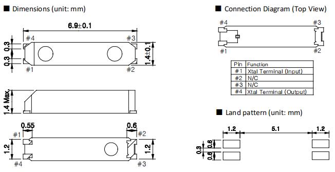 BTX-70晶振,7015mm晶振,32.768KHz晶振,6G路由器晶振尺寸图