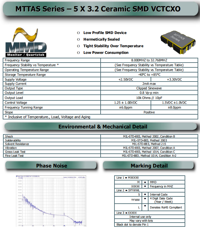 MMD已经发展成为一家服务型技术公司,由知识丰富的管理团队和致力于完成客户满意度的专职人员推动。总部位于内华达州的里诺和南加州的偏远地区。MMD Monitor / Quartztek在频率控制行业的大批量,低成本领域迅速建立了良好的服务声誉。2002年,MMD收购Monitor Products和Quartztek,巩固了其在高稳定性,高性能振荡器领域以及军事市场的地位。Monitor Products一直是频率控制市场高稳定性领域的QPL认证技术领导者,生产定制TCXO温补晶振和高精密石英晶振。