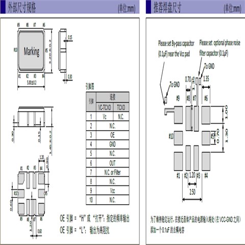 建议将输出负载安装在尽可能靠近石英晶体振荡器的地方(在20 mm范围之间)。