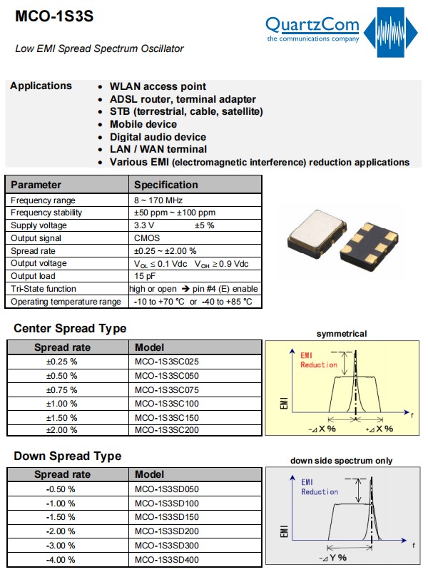 采购:QuartzCom晶振,MCO-1S3S晶振,7050mm晶体振荡器